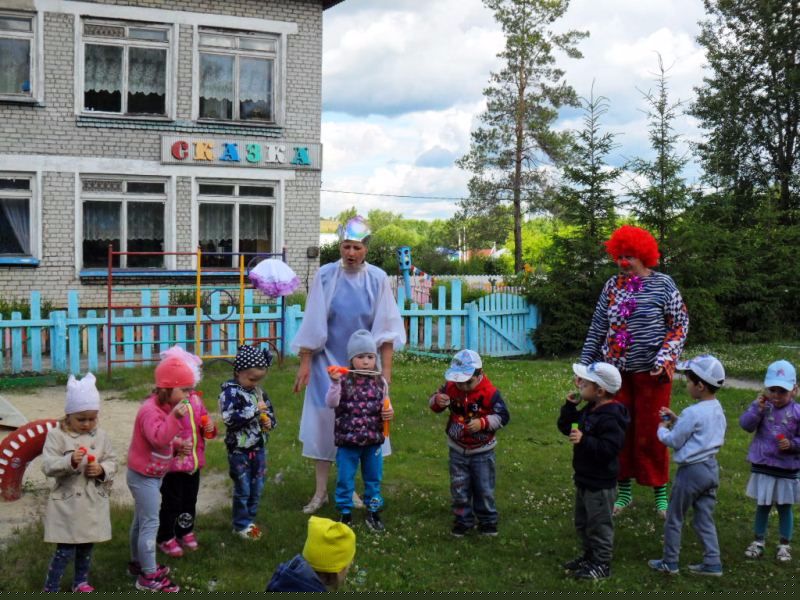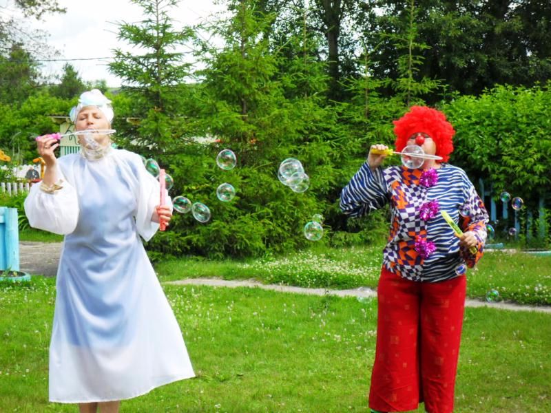 23.06.2017 - развлечение «Праздник мыльных пузырей» В гости к детям пришёл клоун Клёпа, вместе с ним дети отправились на волшебном поезде в волшебную страну, где жила принцесса мыльных пузырей Шампунька. Вместе с клоуном (воспитатель Рехова Н.А.) и принцессой Шампунькой (воспитатель Золина Л.А.) дети участвовали в конкурсах «Кто больше надует мыльных пузырей», «У кого пузырь улетит выше», играли в игры «Пузыри и ловишки» и другие. Клёпа и Шампунька создали волшебную атмосферу и подняли у детей настроение.