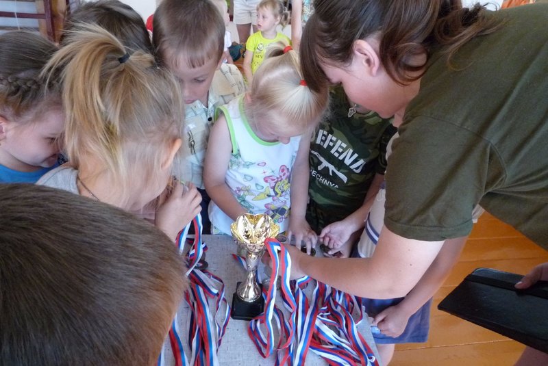 В рамках проекта «Интересные люди нашего посёлка» 26 июля 2017 года в нашем детском саду состоялась встреча с Солоненко Е.Е. – студенткой Ульяновского педагогического колледжа (специальность – учитель физической культуры). Екатерина Евгеньевна активно занимается спортом, имеет награды: кубки, медали, грамоты. Во время встречи с воспитанниками младшей, средней и старшей группы Солоненко Е.Е. рассказала, почему выбрала профессию учителя физической культуры, почему любит заниматься спортом, в каких соревнованиях участвовала, каких высот достигла, рассказала о своих наградах. Во время беседы с детьми Екатерина Евгеньевна выяснила, что дети знают о здоровом образе жизни, как они заботятся о своём здоровье, для чего, какие виды спорта знают. В конце встречи Екатерина Евгеньевна разучила с детьми комплекс зарядки и подвижные игры. Больше всего ребятам понравилось играть в игры и рассматривать медали и кубки спортсменки.