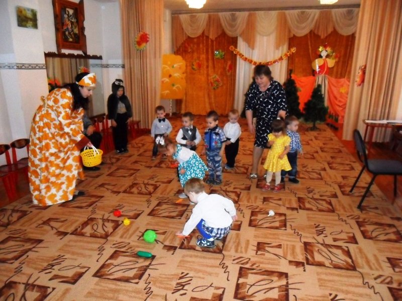 Осень спросила у малышей, знают ли они овощи. Все овощи дети называли правильно и даже поиграли в игру «Собери урожай овощей».