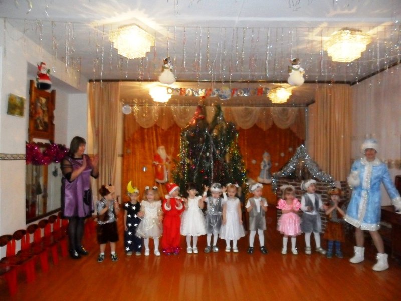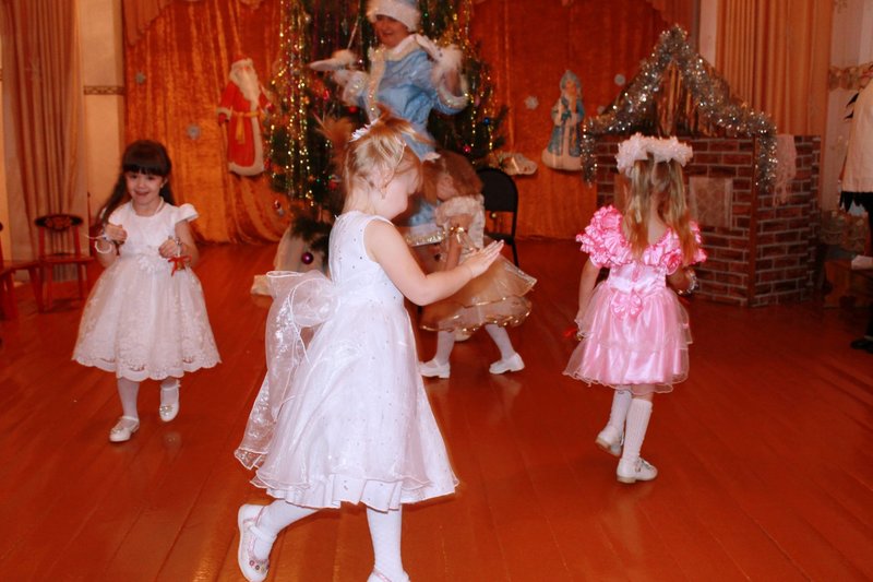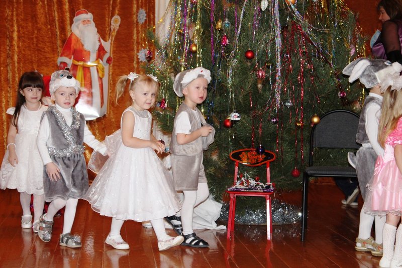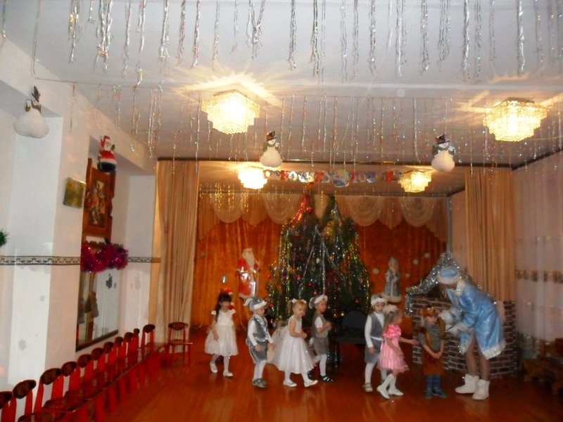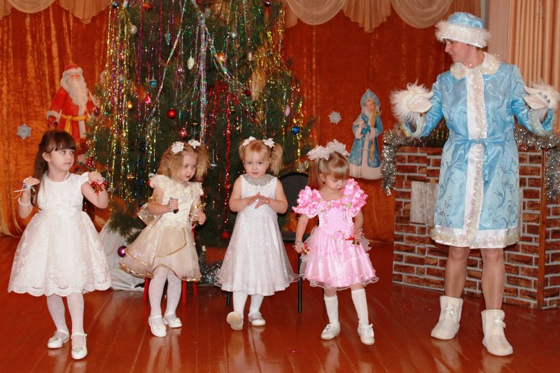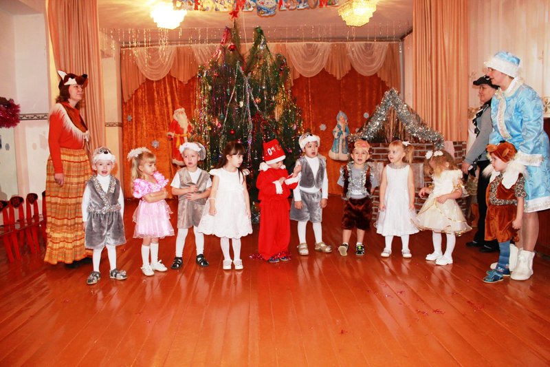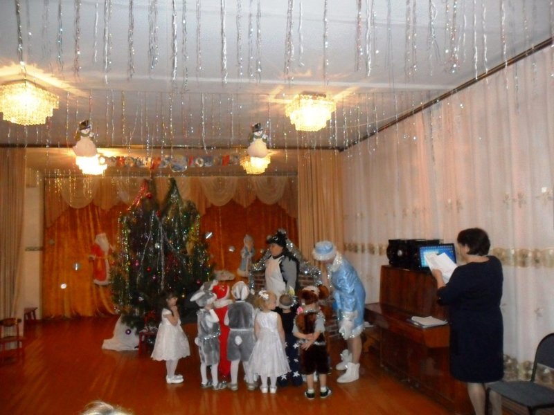 К детям в гости приходили: Дед Мороз, Снегурочка, Лисичка – сестричка и ёжик Ерофей. Дети со Снегурочкой отправились в лес, полный сказок и чудес. Там они встретили нарядную ёлочку, а под ёлкой жил ёжик Ерофей, который помог Снегурочке показать сказку детям. В сказке дети повстречались с Лисой и Дедом Морозом. Дети показывали героям танцы: «Танец бусинок», «Звонкий каблучок», «Пляска лесных зверей», читали стихи, пели песни: «Ёлка», «Шёл веселый Дед Мороз», « Снег – снежок», «Топ, топ сапожок».