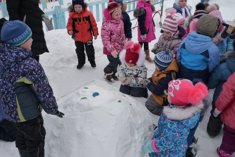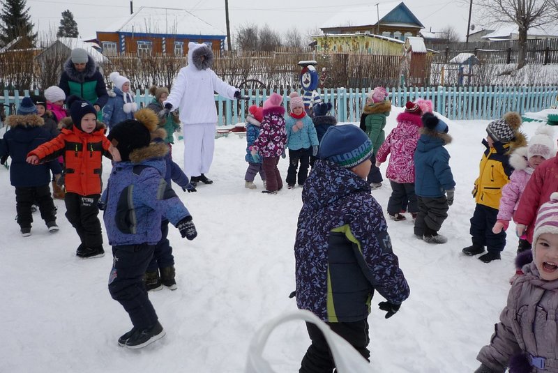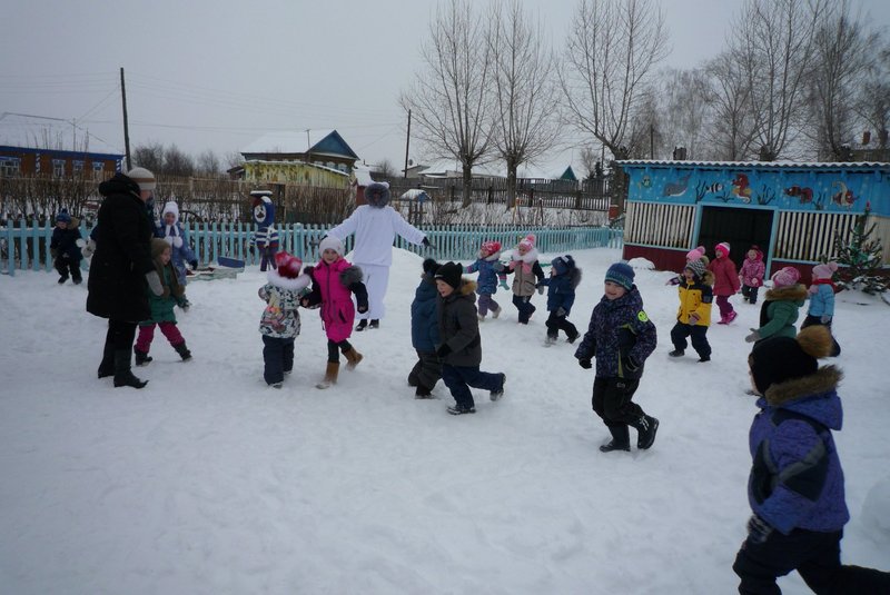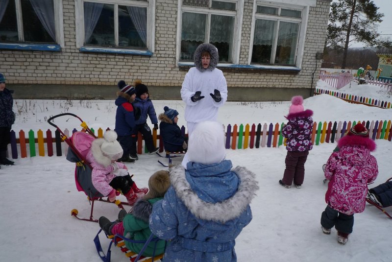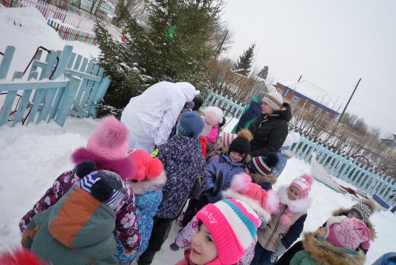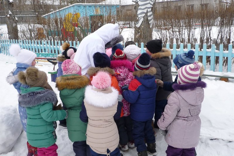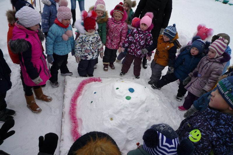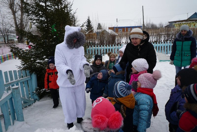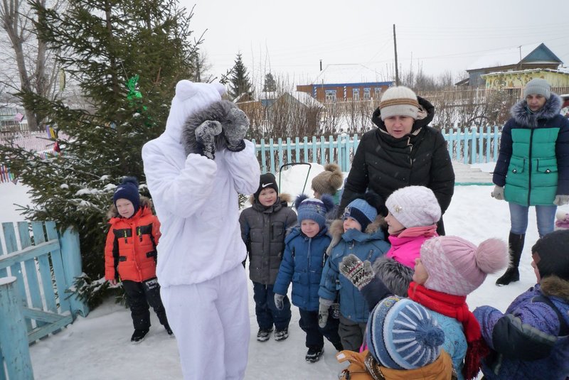 23.01.2018 воспитанники средней и старшей группы приняли участие в развлечении «День снега». В гости к детям пришёл Белый мишка (воспитатель Жеманова С.Г.), который очень радовался снегу, валялся в нём, хотел его съесть, но ребята рассказали ему о том, что снег нельзя есть - может заболеть горло, зато из снега можно лепить снеговиков и снежки.