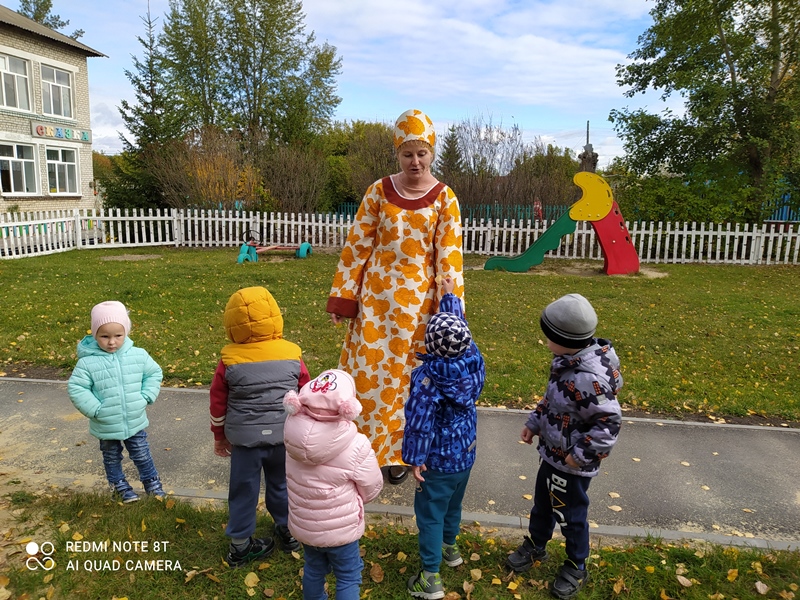 К ребятам в гости пришла Осень и пригласила их в парк посмотреть, как изменились листочки на деревьях и кустарниках. Отправиться в путешествие Осень предложила на волшебном паровозике.