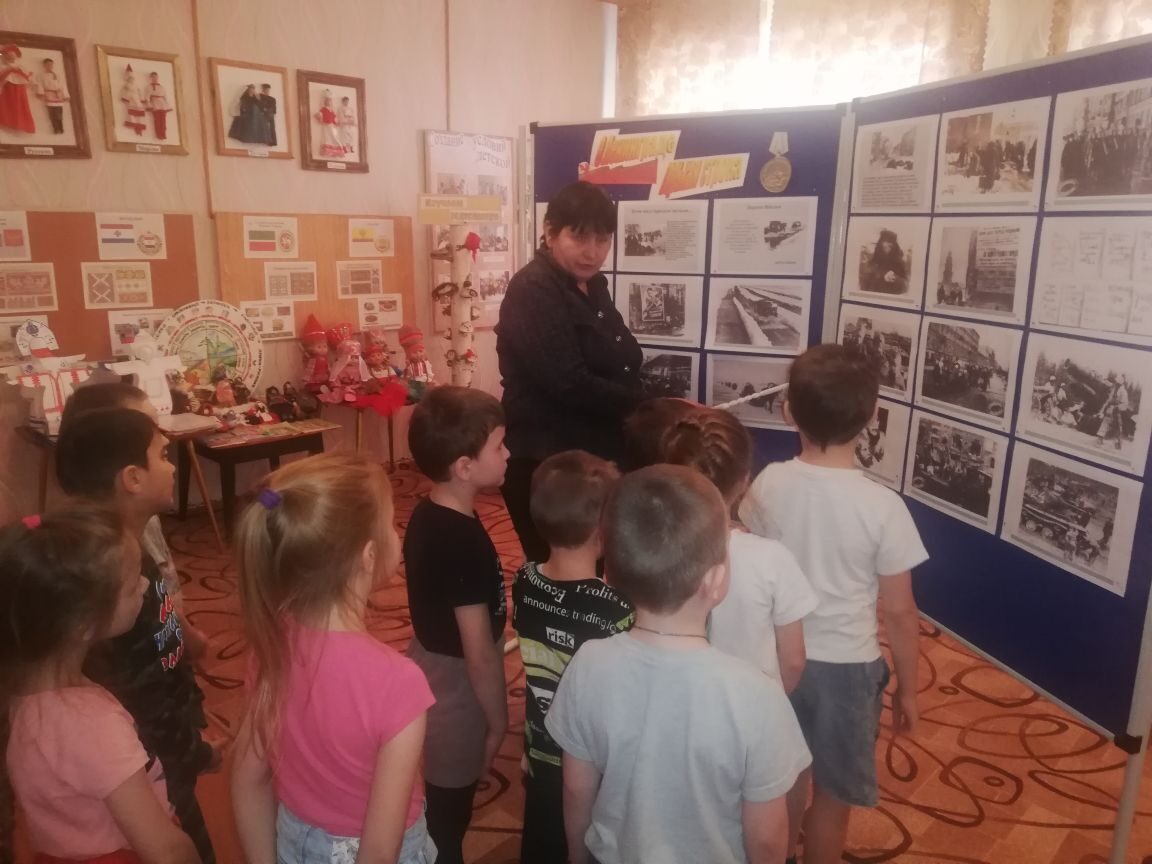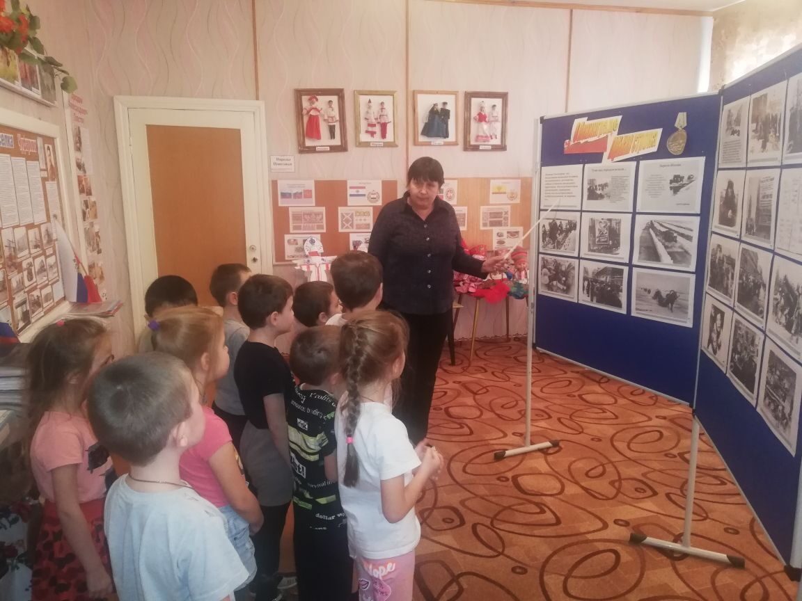 Воспитатель Рехова Н.А.рассказала детям о жизни города, взятого в кольцо блокады, о дороге жизни, об эвакуированных детях в город Ульяновск, об освобождении города от фашистской блокады.